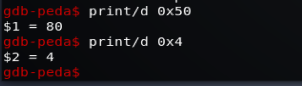 print/d라는 명령어를 통해서 16진수를 10진수로 바꾸어준다.