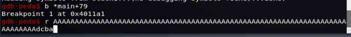 아까의 메인 함수에서 if의 조건문인 cmp함수가 있는 +79에 브레이크 포인트를 걸고 run을 해보려고 한다.